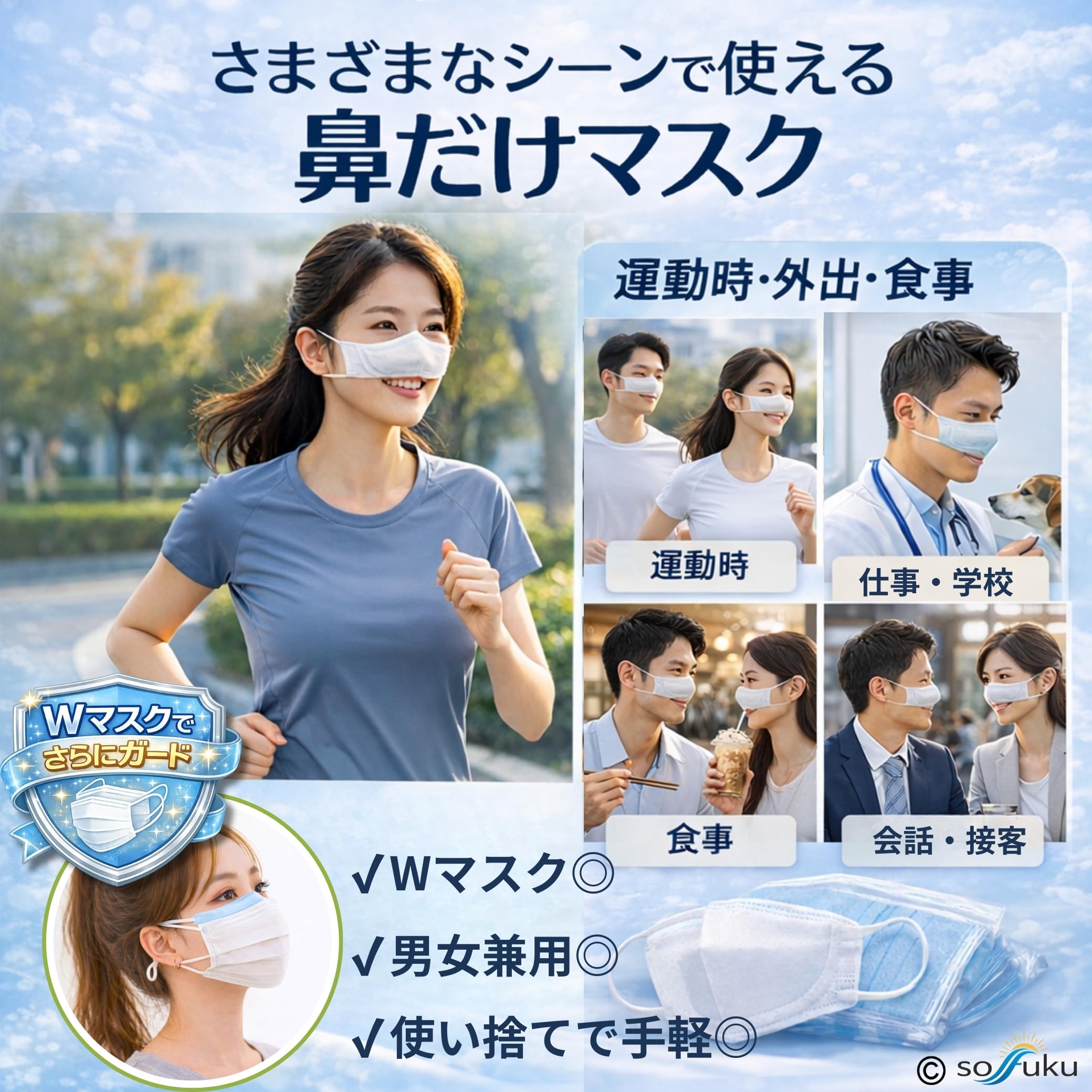 洗濯・再利用は想定せず、清潔に使える仕様 - 日常生活向けの鼻周り保護アイテム