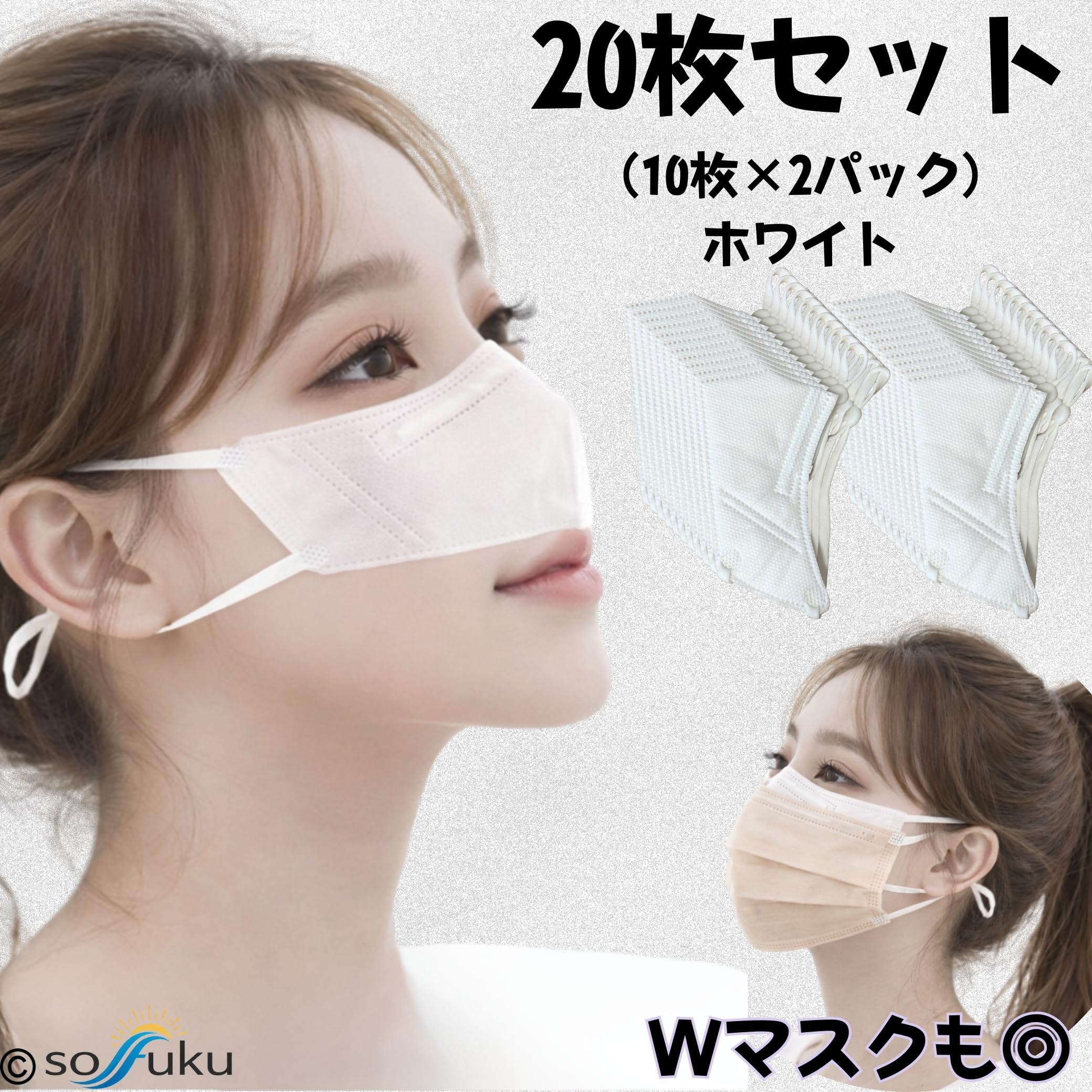 - 鼻専用設計の不織布マスク